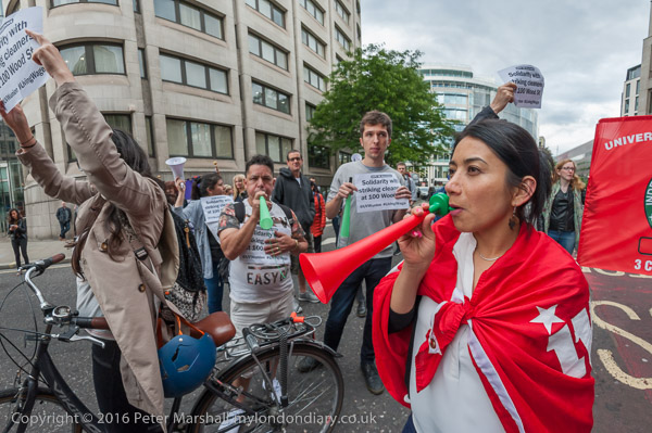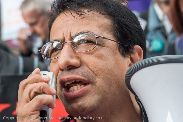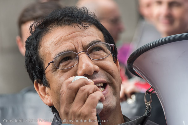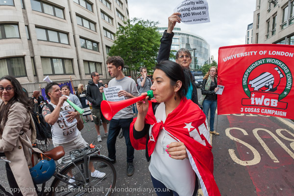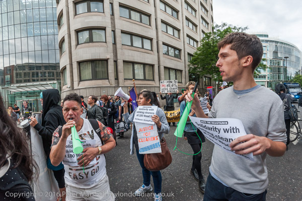 Another cleaner, Juan Carlos speaks at the end of the protest. The strike continues with a daily picket