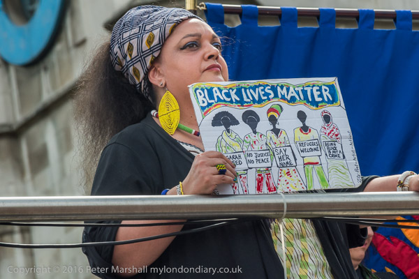 Zita Holbourne of BARAC and PCS holds up her 'Black Lives Matter' poster