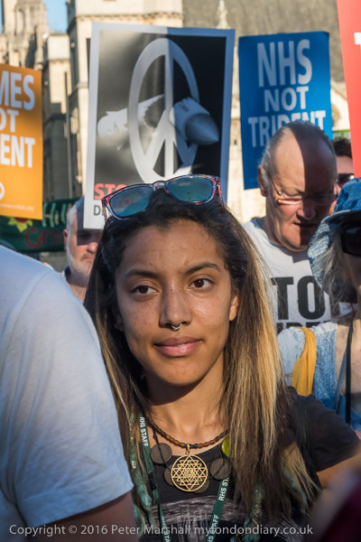 Faith protesters lined up on the edge of the square facing Parliament, including Buddhists from the Battersea Peace Pagoda