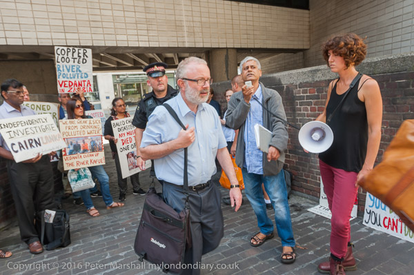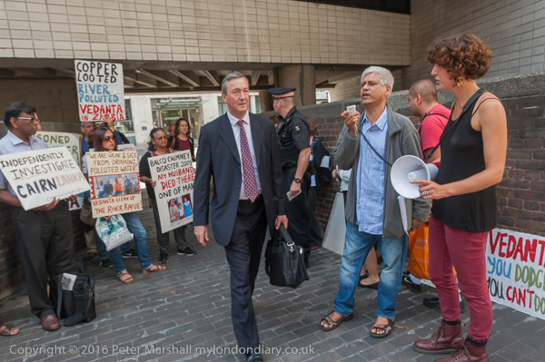 The protesters set up in the yard leading to the Ironmonger's Hall with posters about Vedanta's crimes around