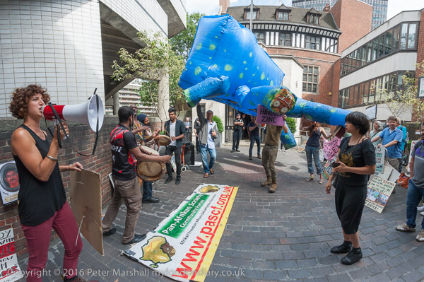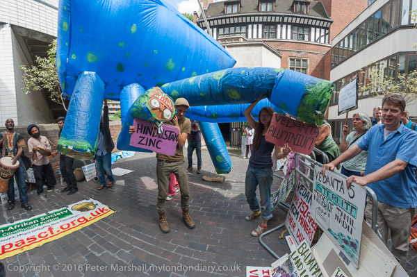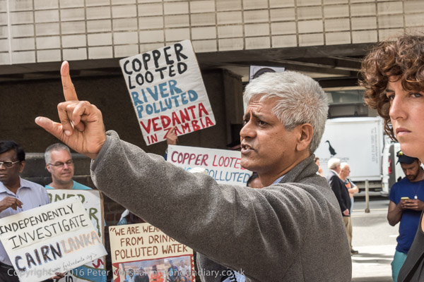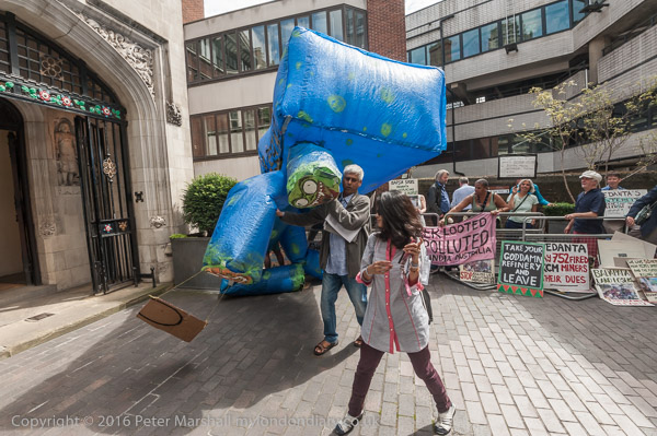 owns over 2/3 of Vedanta was escorted by police through a back way - but the protesters saw him and shouted at him