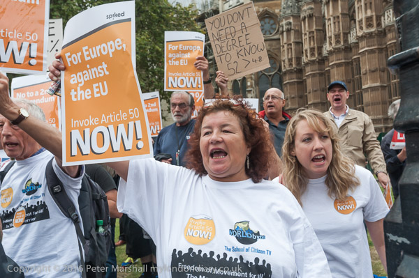 Pro-Brexit campaigners organised by Spiked magazine shouted loudly in Old