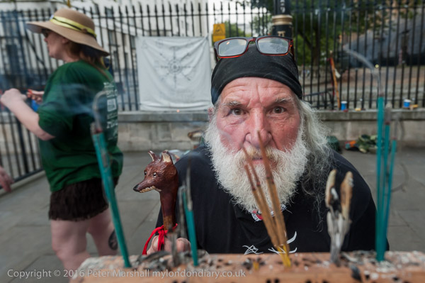 Pagans staged a vigil against fracking for around 24 hours on Whitehall opposite Downing St.