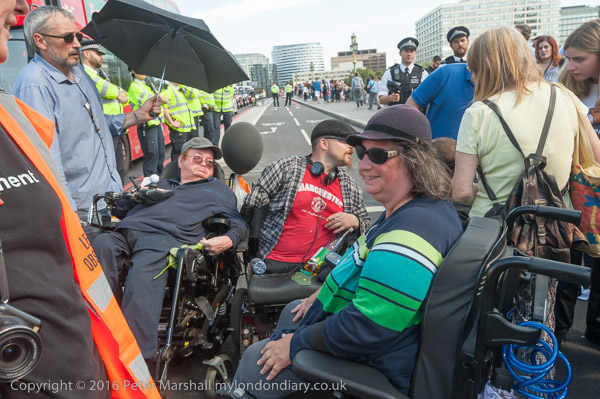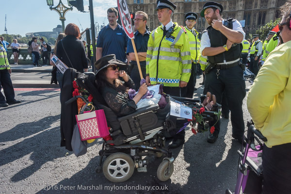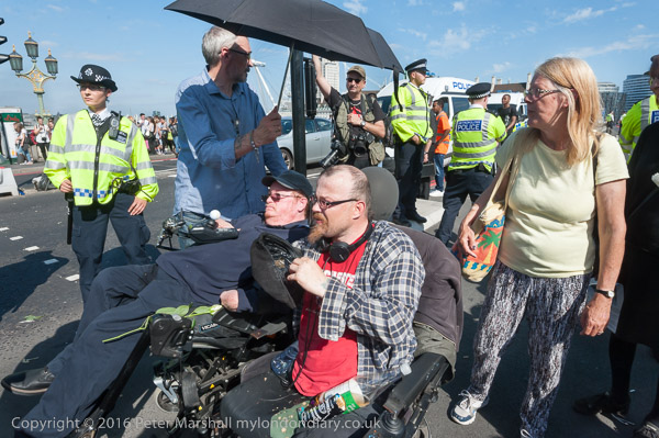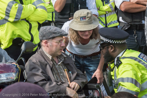 One carer who refused to move away from the disabled person he was looking after was arrested and taken to a police van