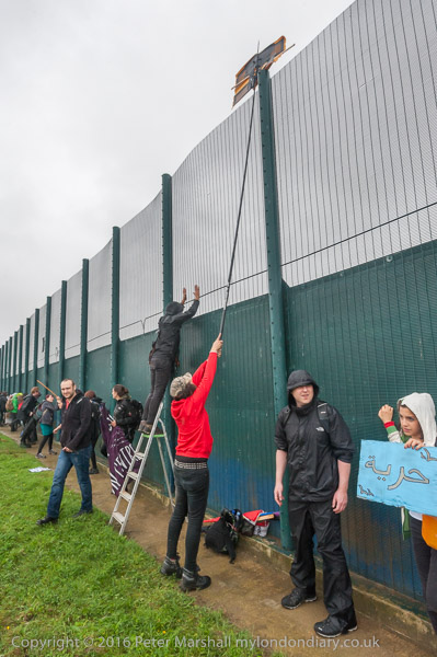 A sign in the window simply says 'HELP'. The windows only open a short distance. The prisoners can hear and we can hear them shouting