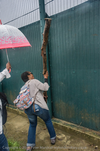 People found a tree branch and used it to bang the fence