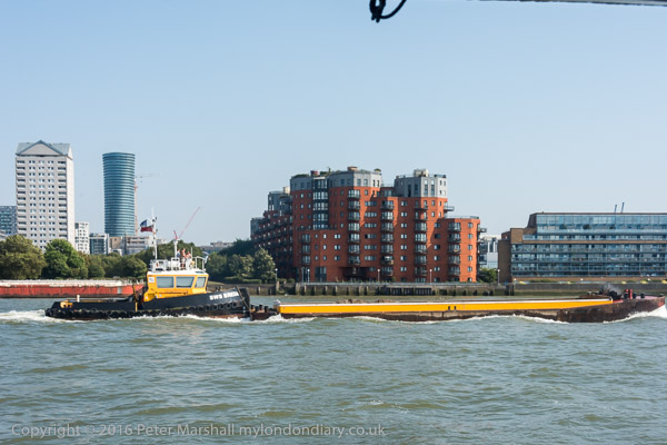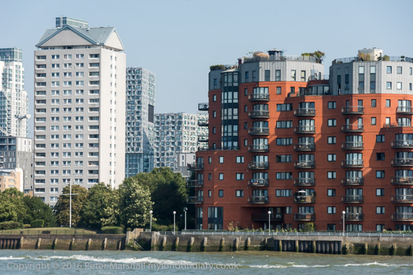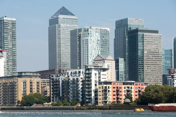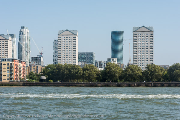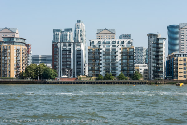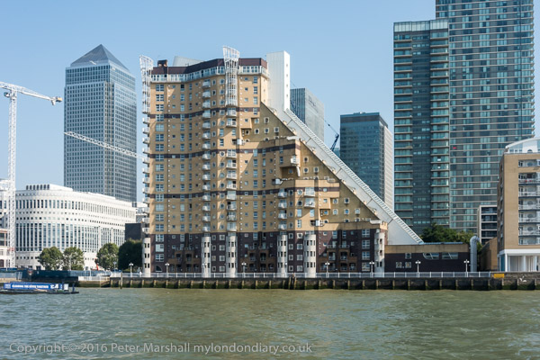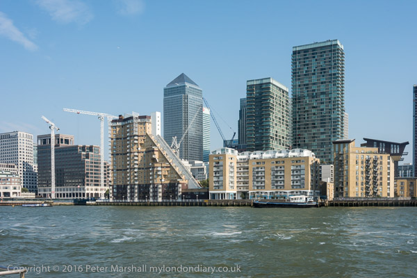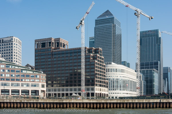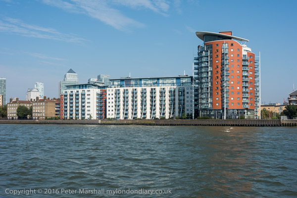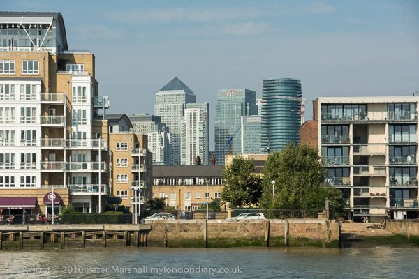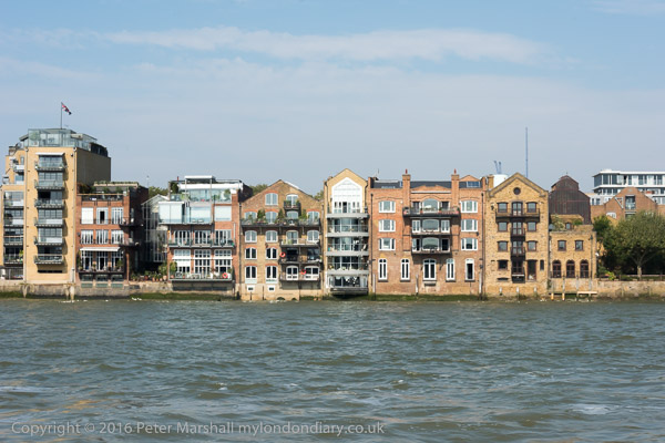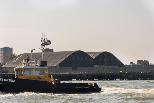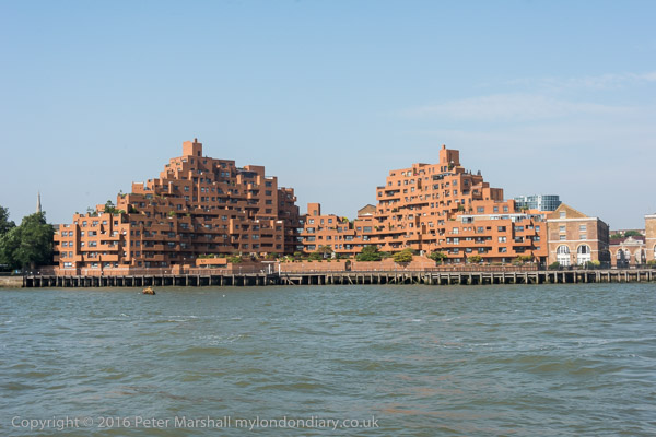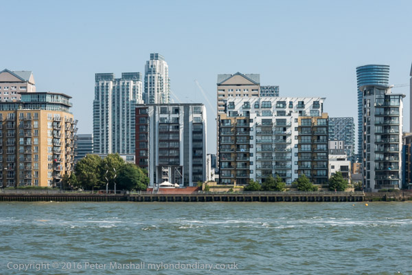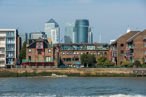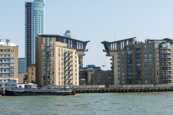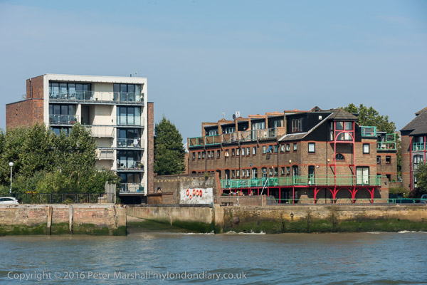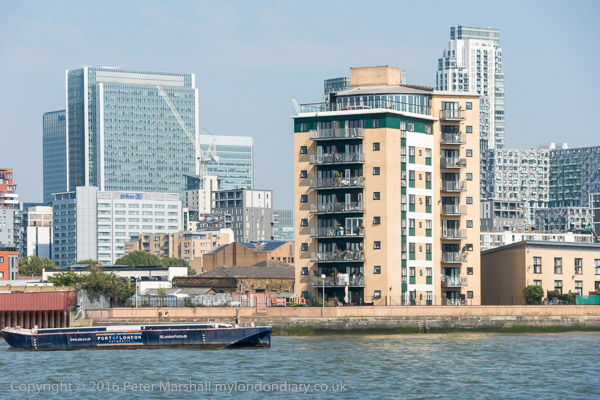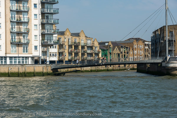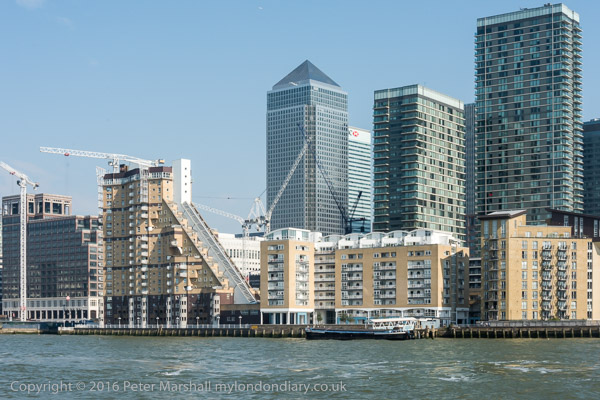 On the South bank, these listed sheds are the 1840s Olympia Warehouse on the Convoy's Wharf site
