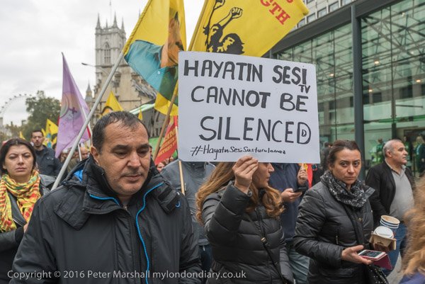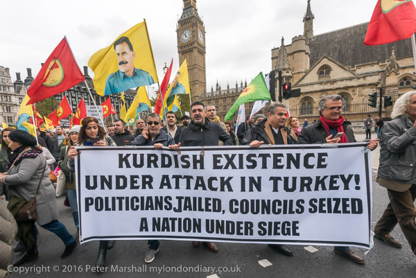 Kurds marching against Edrogan's arrest of MPs sit down briefly on