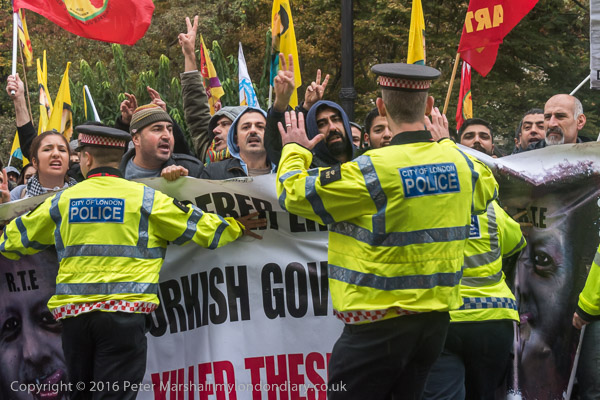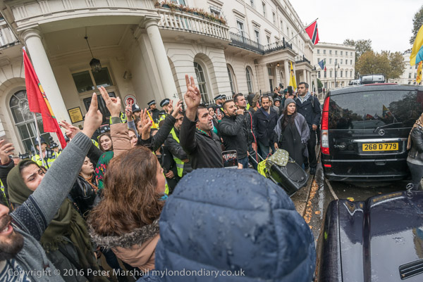 The protesters march up to the Turkish Embassy in Belgrave Square