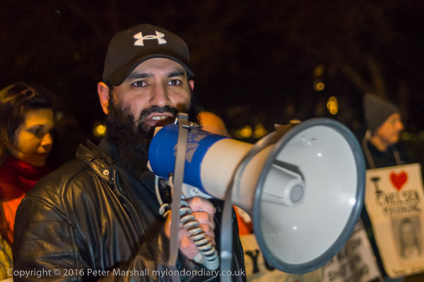 A campaigner calls for justice for London Cab driver Anis Sardar