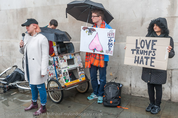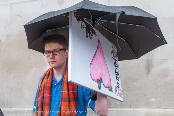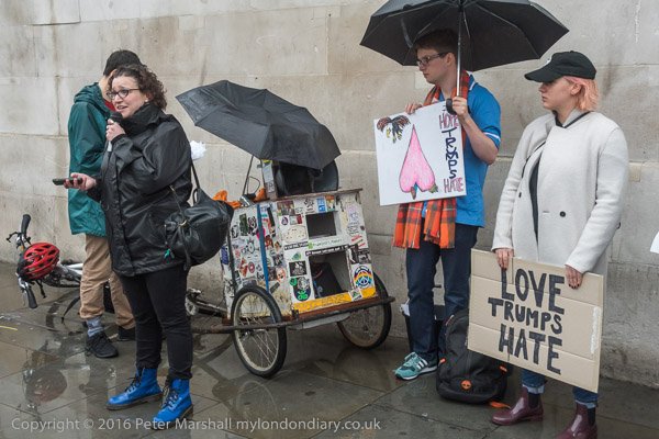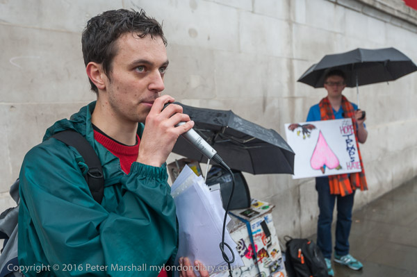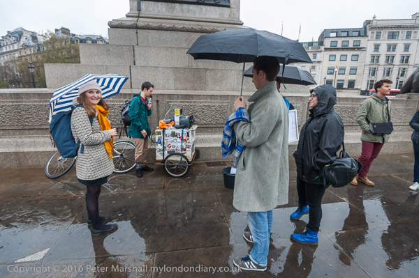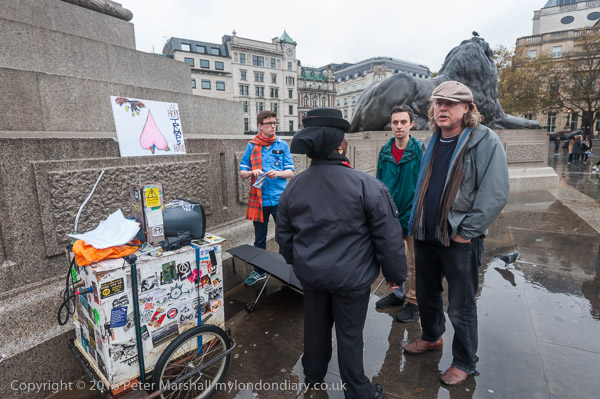 A heritage warden tells the protesters they cannot protest in Trafalgar