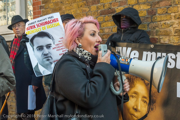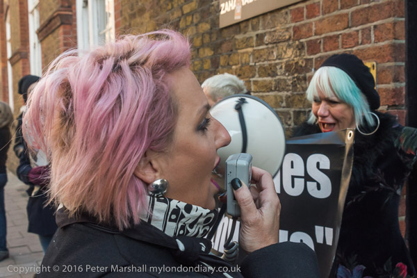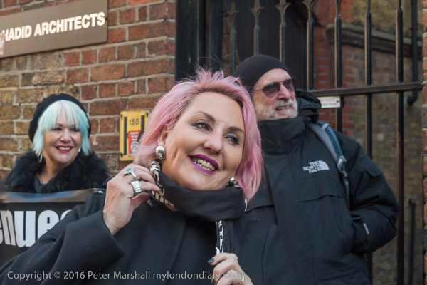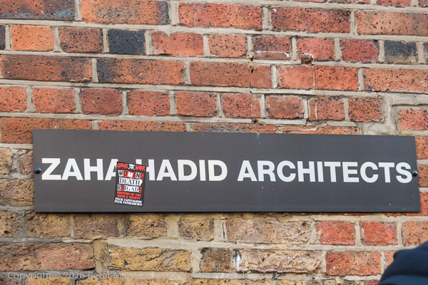 Zaha Hadid Archtects sign with a Class War Womens Death Brigade sticker
