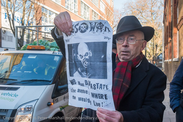 Ian Bone holds up a copy of the cover of on old copy of the CLass