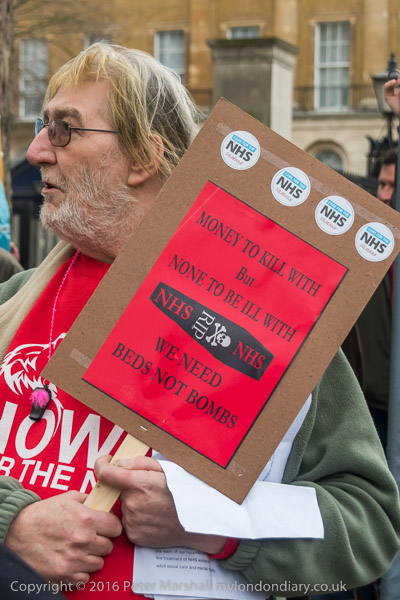 Several people had placards or t-shirts with Nye Bevan's quote "The