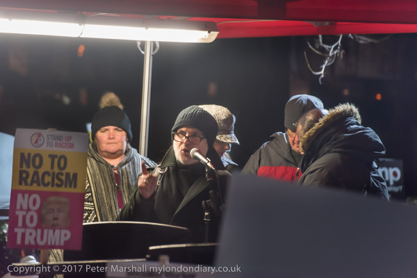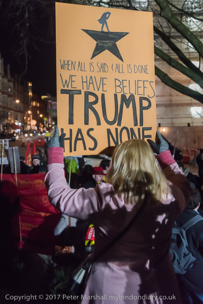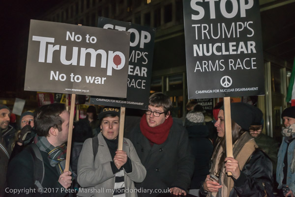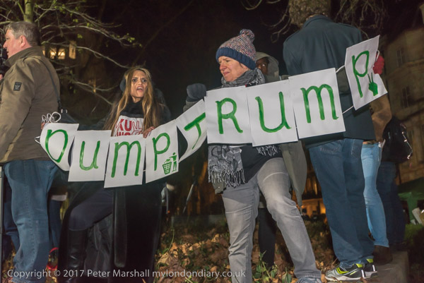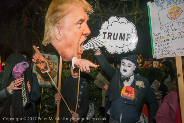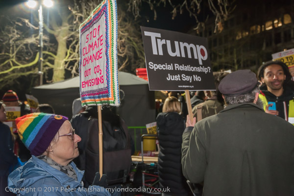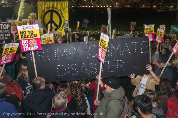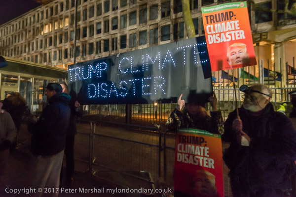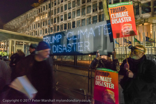 'Trump Climate Disaster' an illuminated banner from Campaign Against