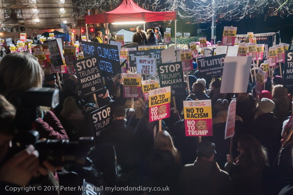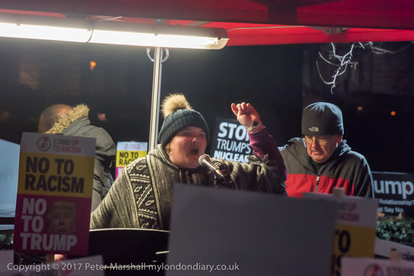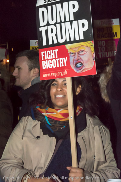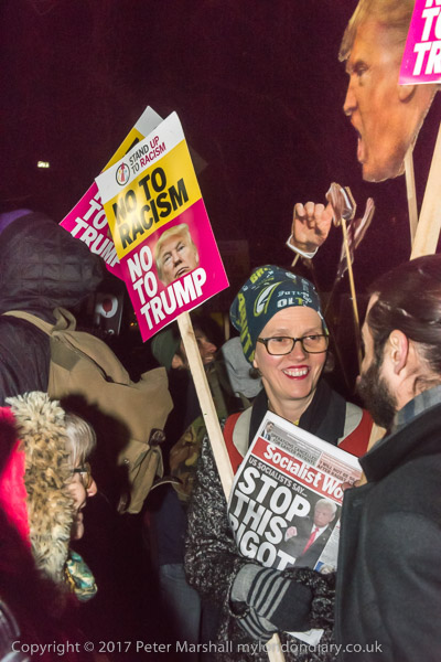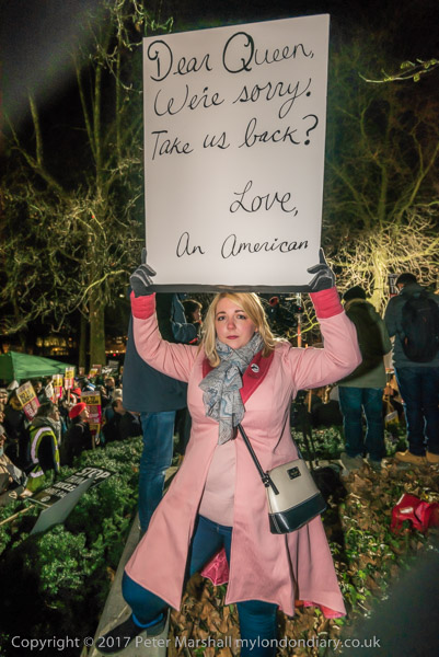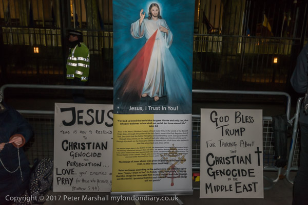 and a lone woman with a rosary and posters 'God Bless Trump' was bothered