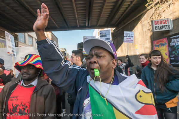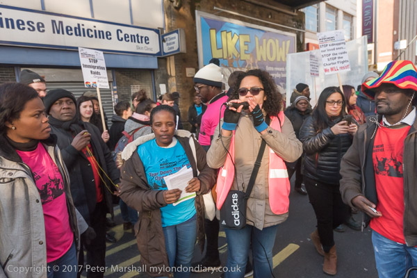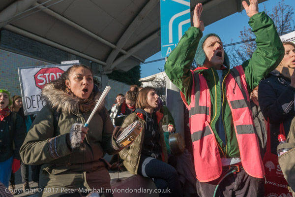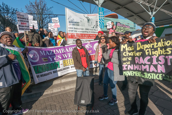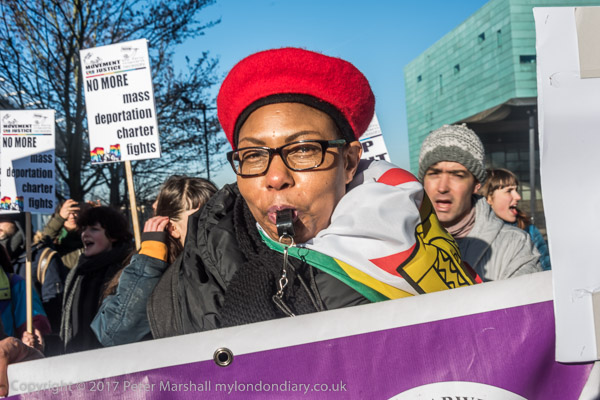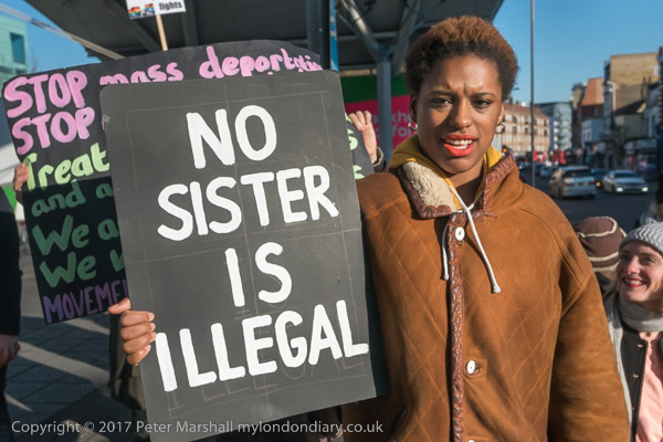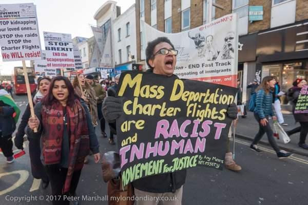The FRFI banner 'Fight Britain's Racist Immigration Laws! No deportations!'