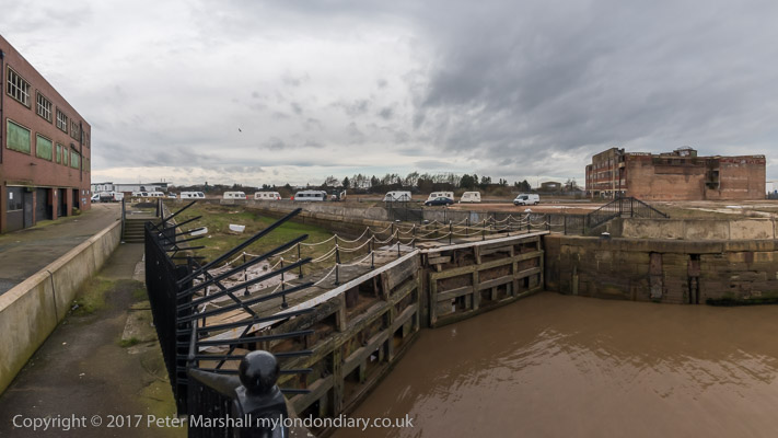 Traveller's caravans on the dock, and the dock entrance bythe Bullnose