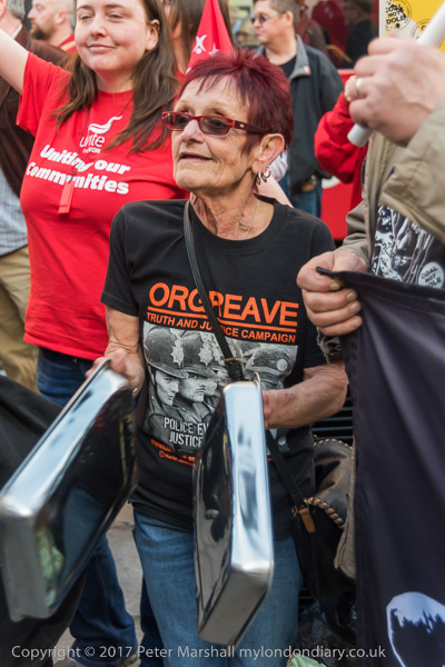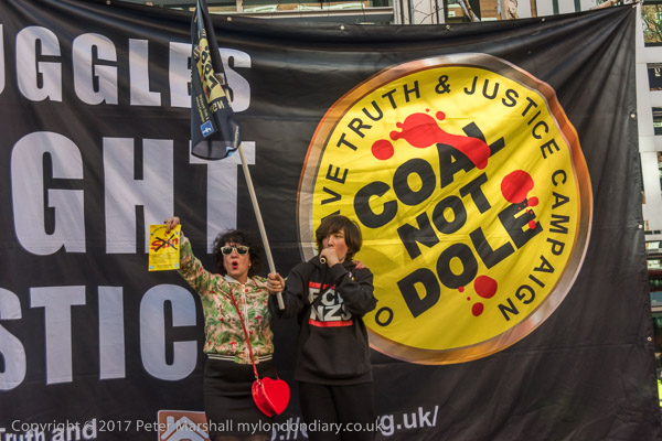 Women from the Orgreave Justice campaign pay tribute to a campaigner