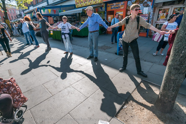 This was around a hundred yards south of where the extreme right rallies were taking place close to each other, and there were extensive barriers and many police to stop the two sides approaching each other. When I was photographing the right wing rallies I could see the UAF and hear that they were shouting 'Fascist Scum off our streets' and other slogans, and that there were also some speeches.