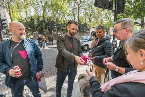 Setting up a pavement shrine outside the Russian Consulate in Kensington