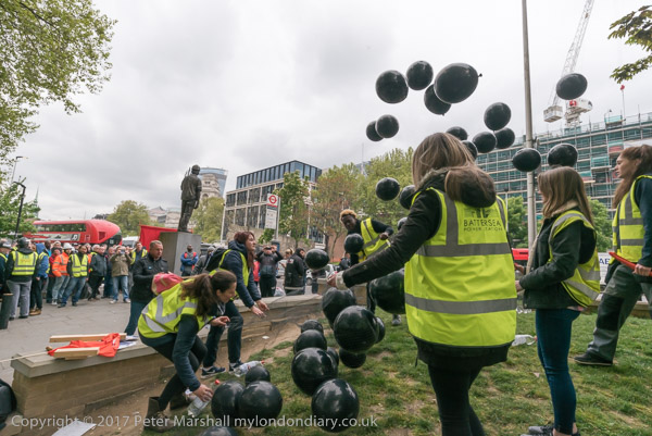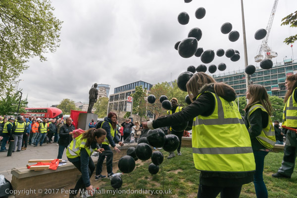 Black balloons - one for each worker killed at work in the last year