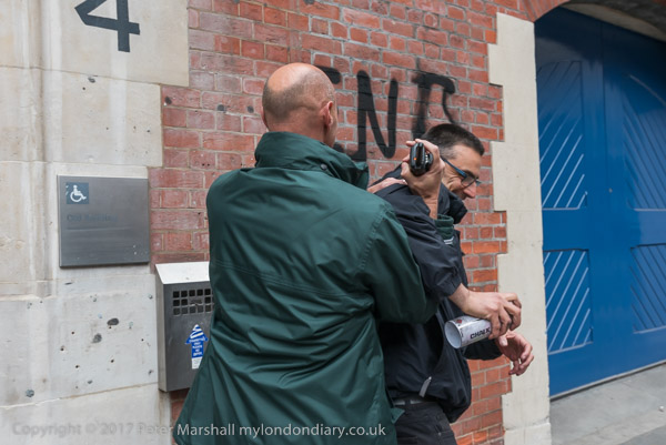 He tells them he has an injured shoulder and needs to be handled carefully,