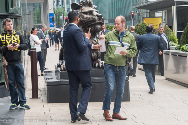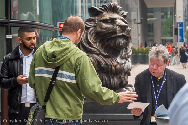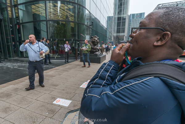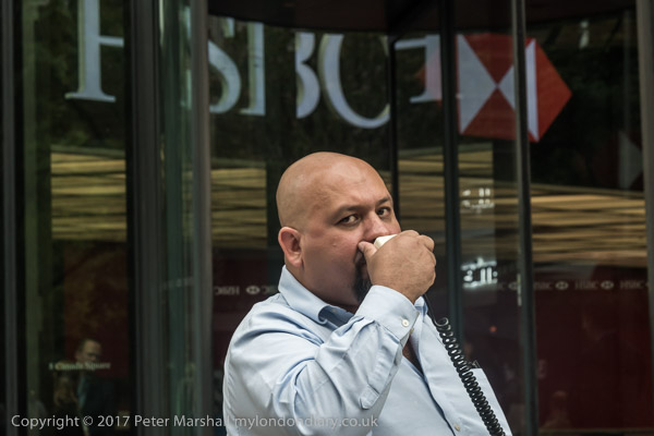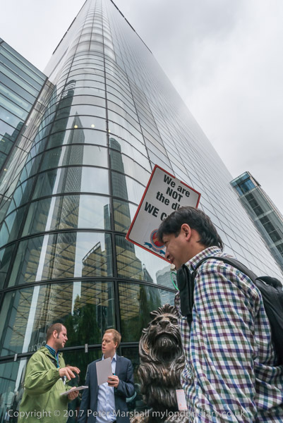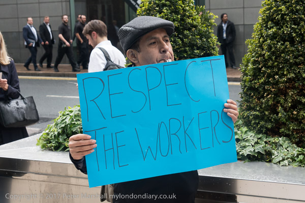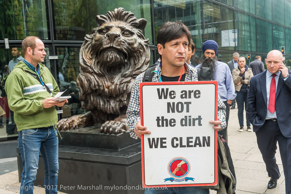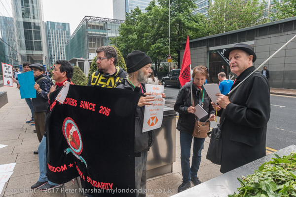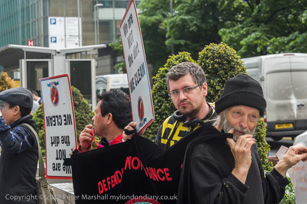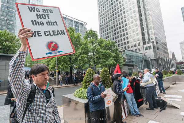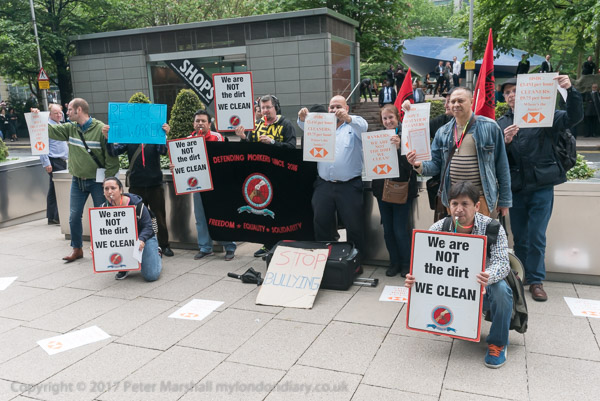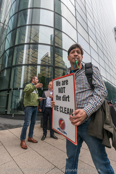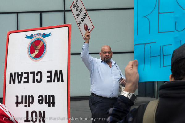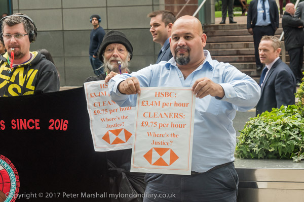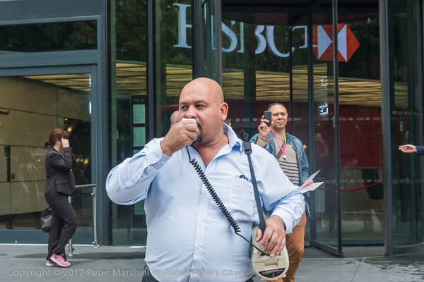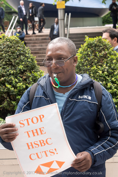 In between speaking the cleaners shout against the HSBC cuts and blow