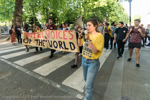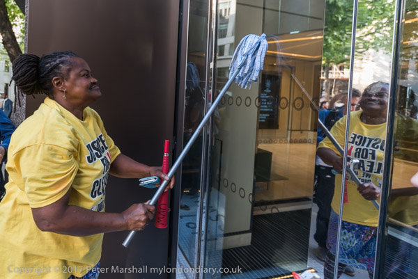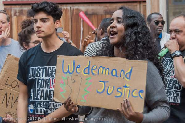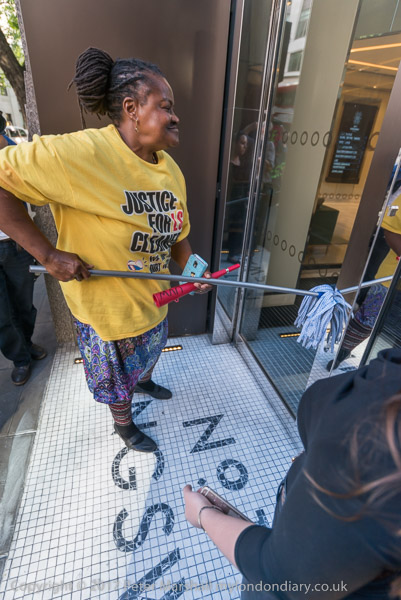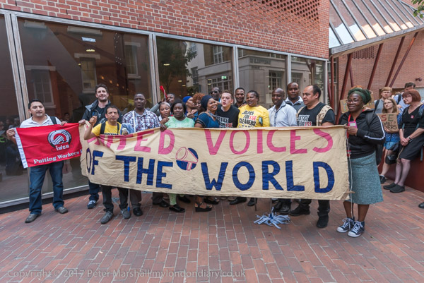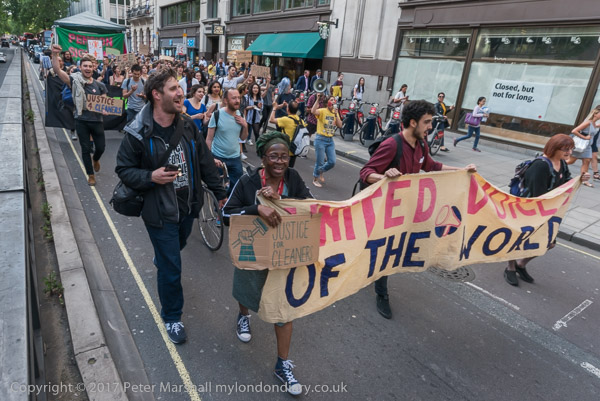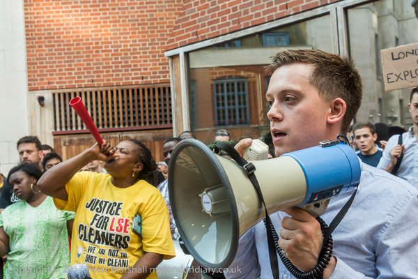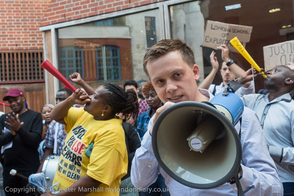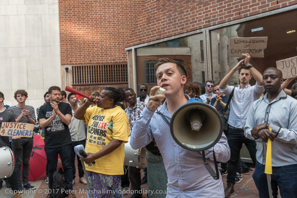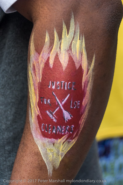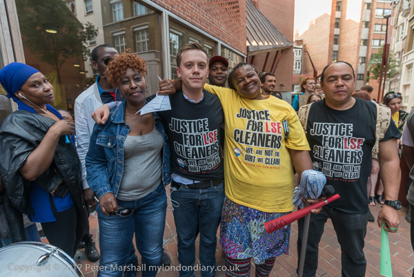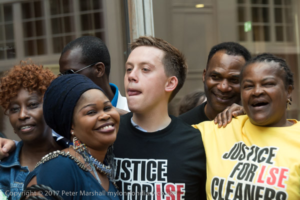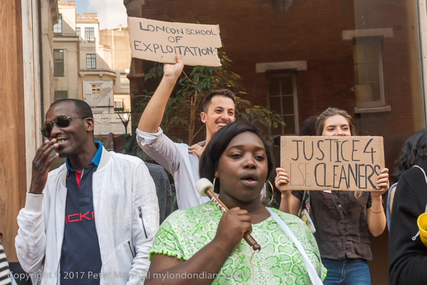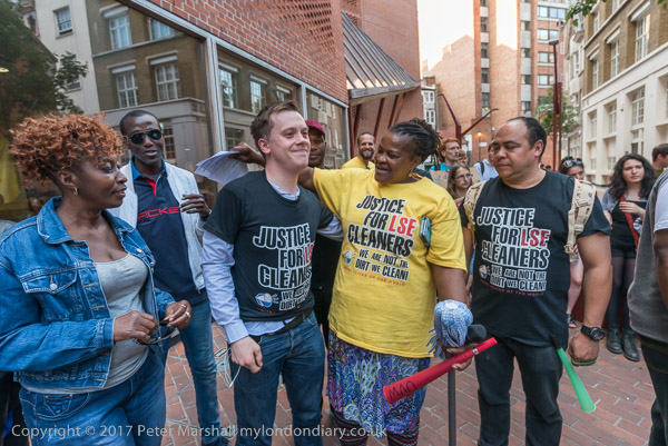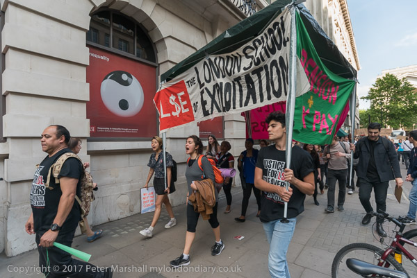 LSE cleaners and supporters carry their banner 'L$E - The London school