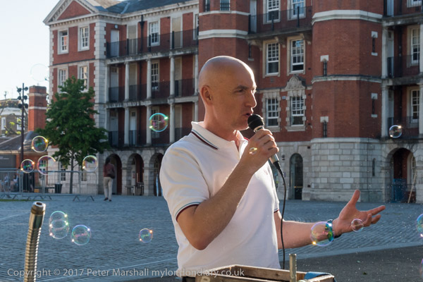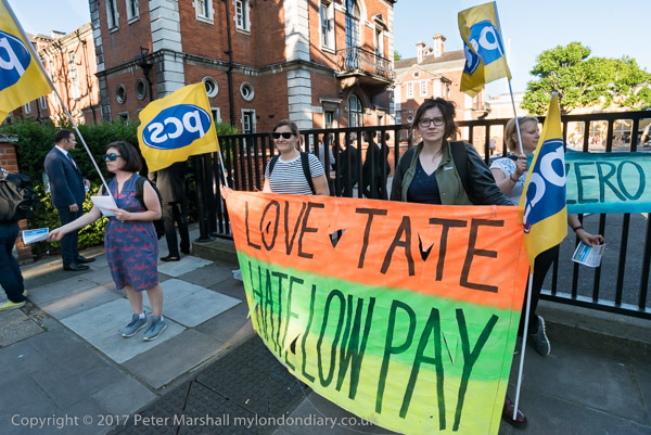 and picket at the entrance where guests are coming to Nicolas Serota's