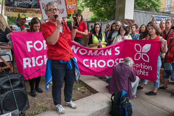Shocked by the news that Theresa May is to govern with the help of the DUP, the London-Irish Abortion Rights Campaign protest in Parliament Square against the bigoted views they hold against abortion, women's rights and gay rights.