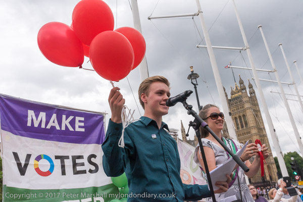 the Women's Equality Party and balloons were used to demonstrate the