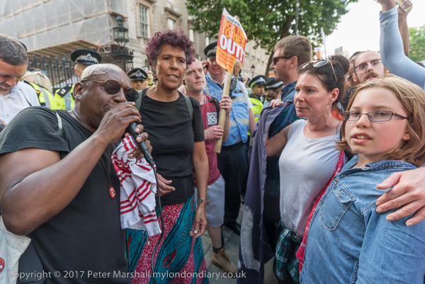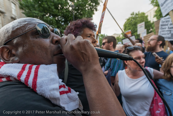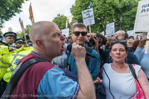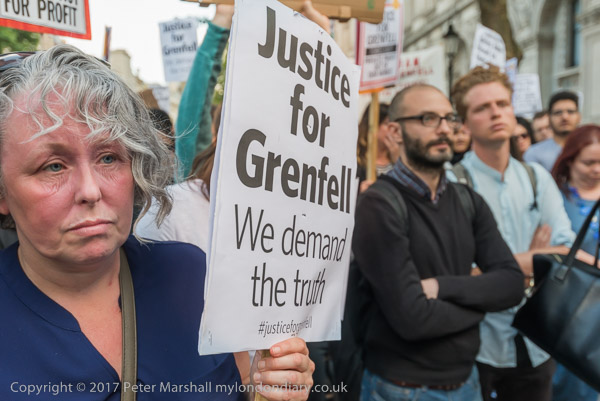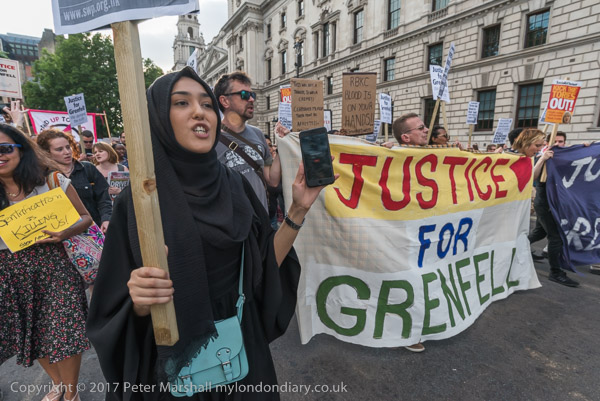 The Justice 4 Grenfell banner is carried past Parliament and up to