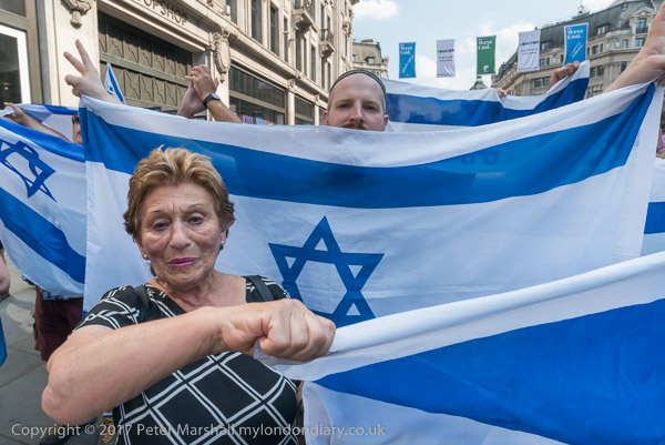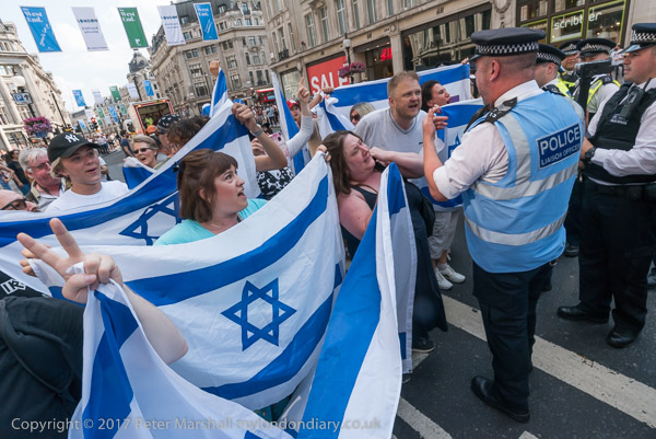 Zionists with Israeli flags block Regent St at Oxford Circus to hold