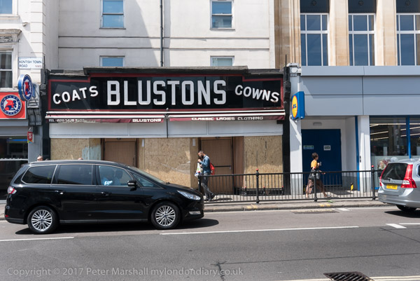 The Grade II listed 1931 Vitrolite shop front of Blustons at 213-5