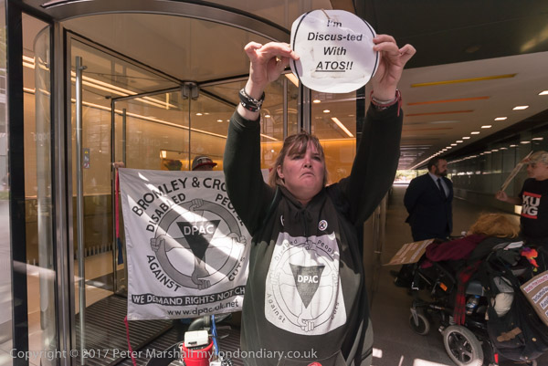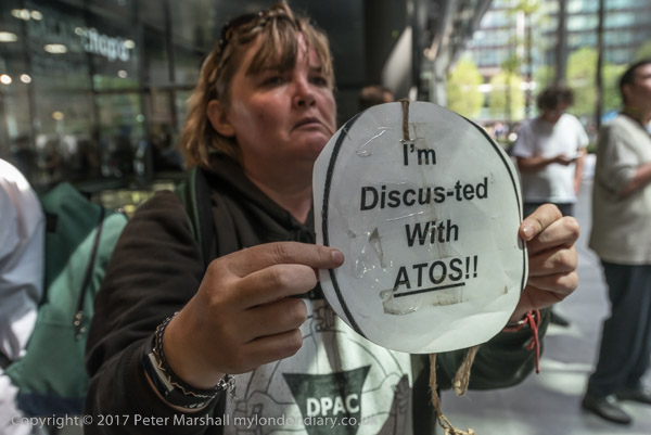 'I'm Discus-ted With Atos'. This protest is a part of the week of