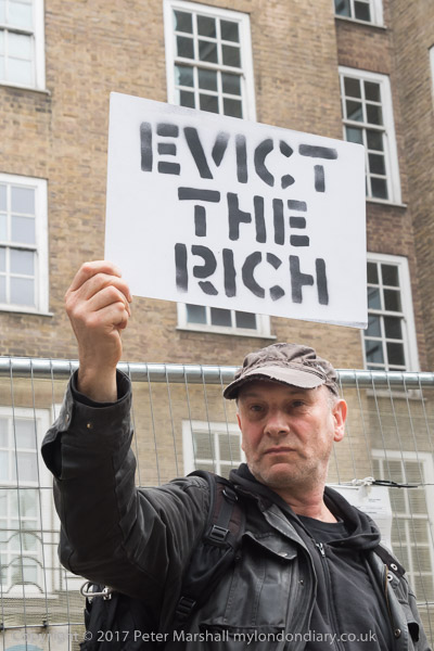 Sid Skill holds the banner - and behind him a Class War sticker on