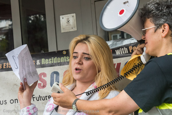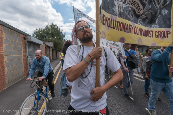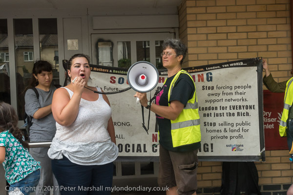 And a rally begins at the entrace to Tanner Point, with housing campaigner