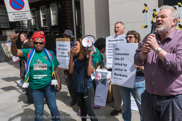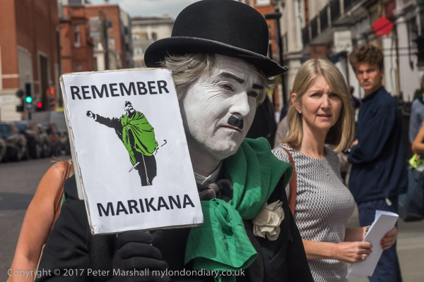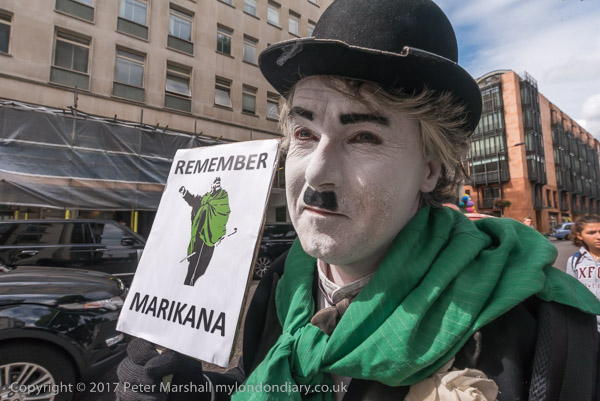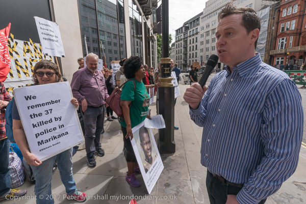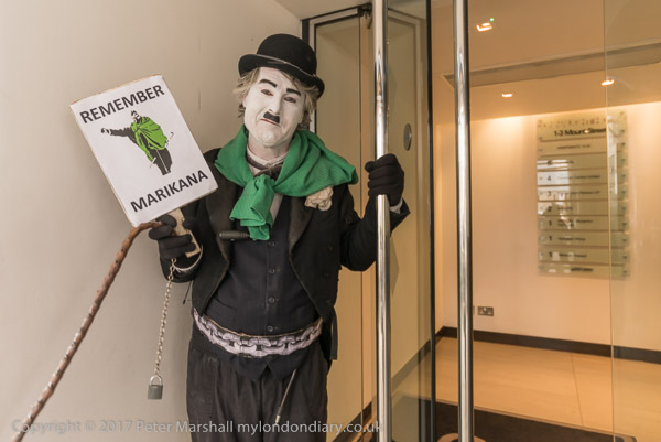 Charlie X at the door of the block containing the Lonmin office