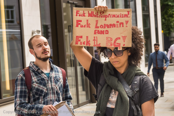 Proteseters were on the pavement opposite the offices, where they