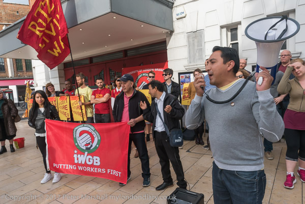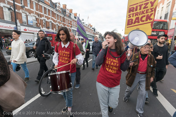 The Ritzy strikers marched around the centre of Brixton behind the