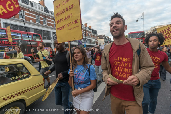 The Ritzy strikers march past Brixton Underground station and the