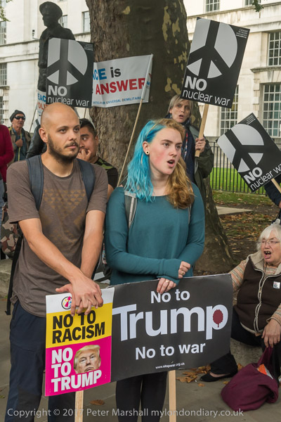 A Scottish protester had brought a banner to hold up facing Downing