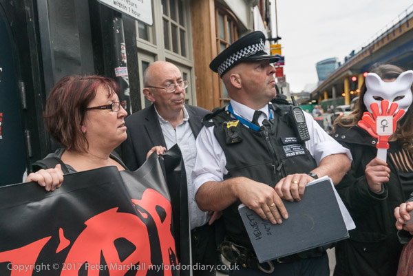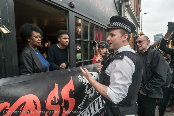 Police arrive and suggest they should protest further away from the