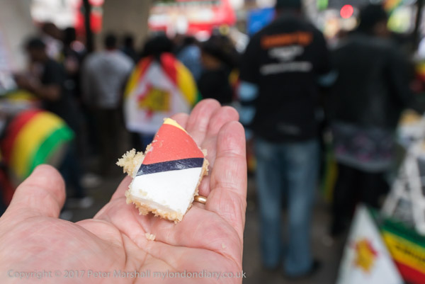 Someone has made and iced a cake with the Zimbabwe flag and the number