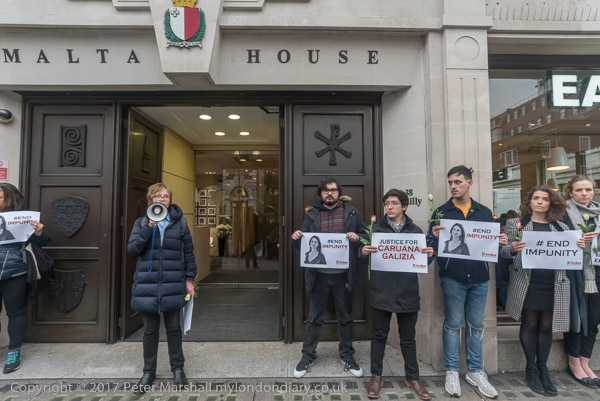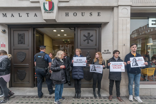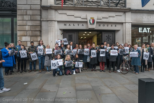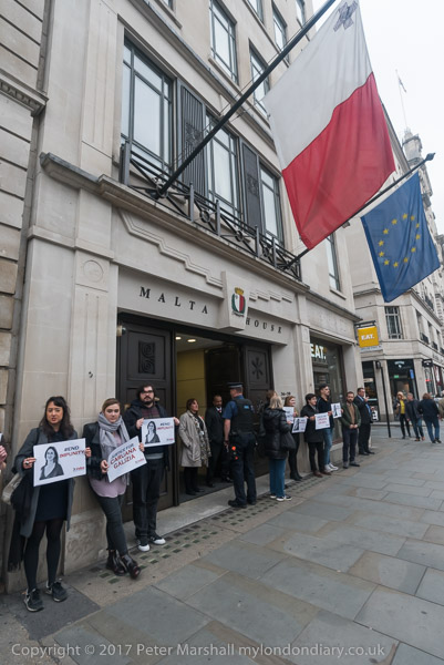 The protest took place outside Malta House, the embassy on Piccadilly