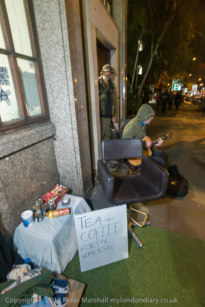 and collecting donations from those passing by. The squat offers free