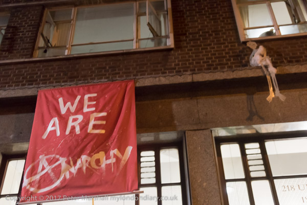 'Refugees Welcom' 'Escape Capitalism - Organise, Strike, Occupy -
