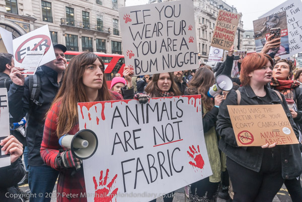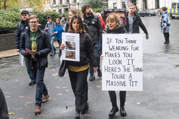 'Canada Goos, Animal Abuse' was one of a number of slogans the protesters