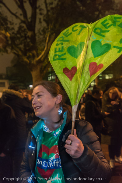 and pss out lighted candles to others in the crowd